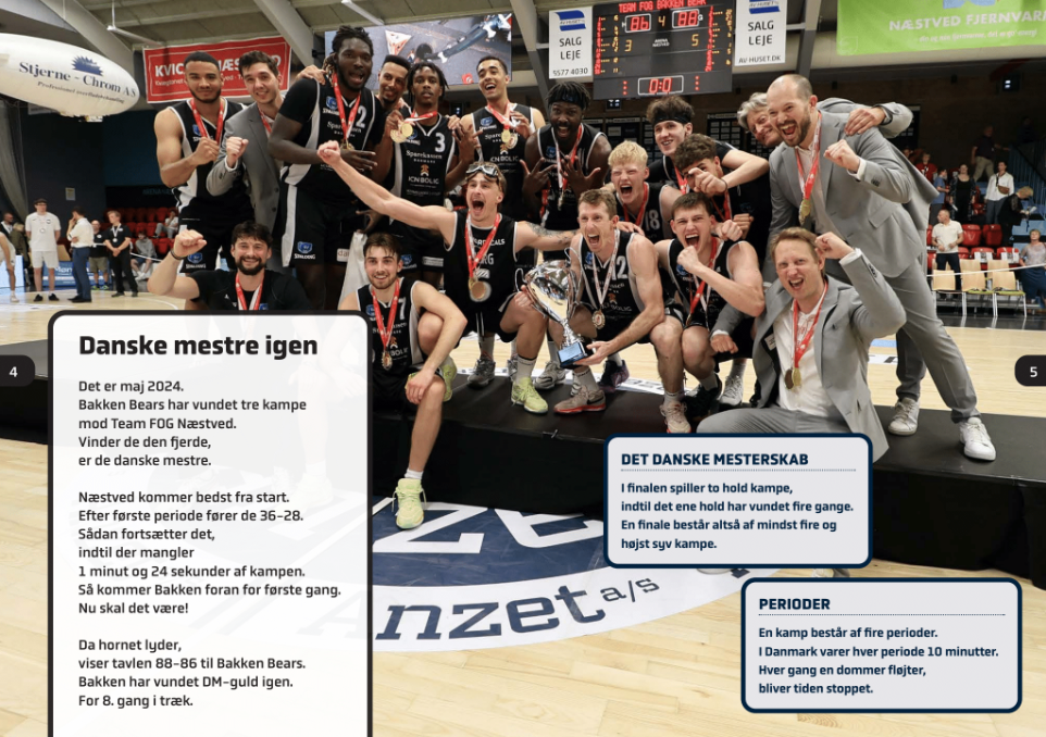 Guld igen og igen. Bakken Bears er helt i top i dansk basket. Ingen har vundet så meget som dem. De spiller også mod gode hold i Europa. Læs mere om sporten, om Bakken Bears, deres spillere, deres maskot og deres sejre i denne bog.