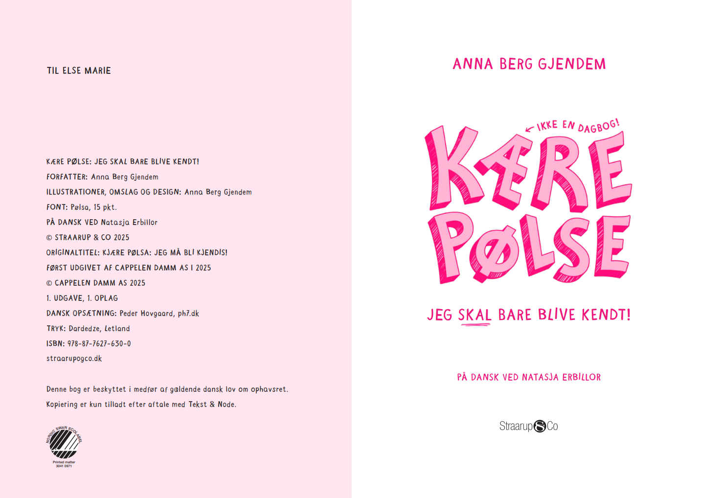 Kære Pølse: Jeg skal bare blive kendt! er en frisk dagbog, der er egnet til børn fra 9-12 år, der elsker at grine. Bogen er let at læse med sjove illustrationer – ligesom en rigtig dagbog. Kære Pølse er skrevet og illustreret af Anna Berg Gjendem.