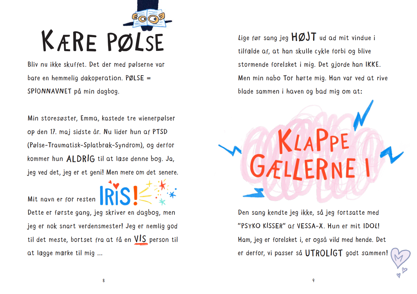 Iris er en drømmer, der tror på sig selv! Hendes dagbog, Pølse, er proppet med sjove ideer og narrestreger, men måske vigtigst af ALT: En plan for, hvordan hun skal kapre den SØDESTE dreng i klassen!
