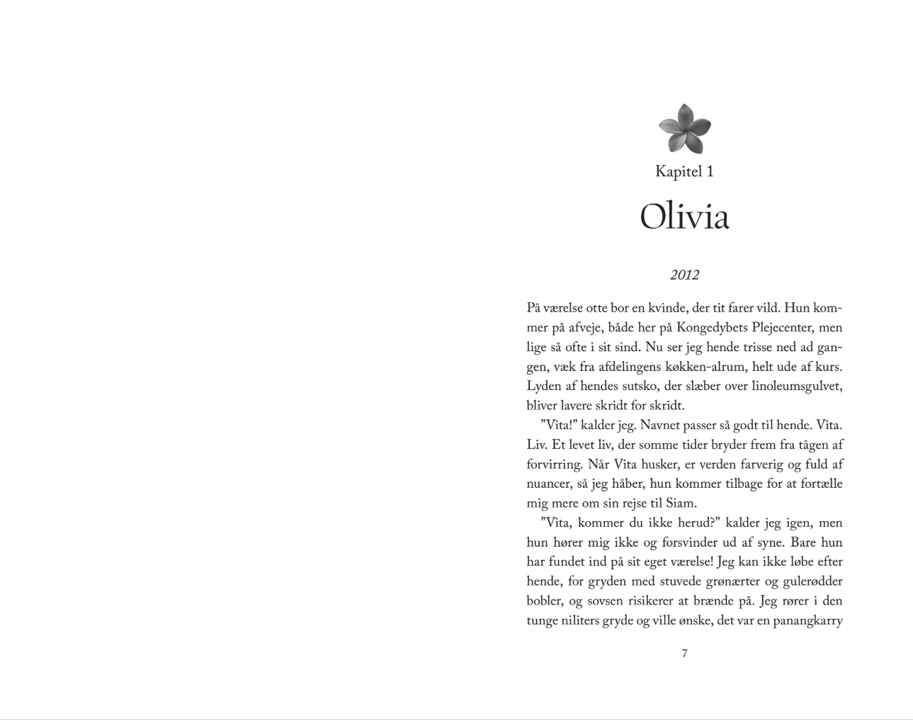 På værelse otte vor den nioghalvfemsårige kvinde Vita, der har en lille appetit på mad, men en stor appetit på livet. Vita tryllebinder Olivia med sine fortællinger og tager hende med på en rejse fra København til Sydøstasien i 1930’erne, hvor livet som ung kvinde, der må stå ansigt til ansigt med nye kulturer og samtidens normer, kræver stort mod og troen på ægte kærlighed.