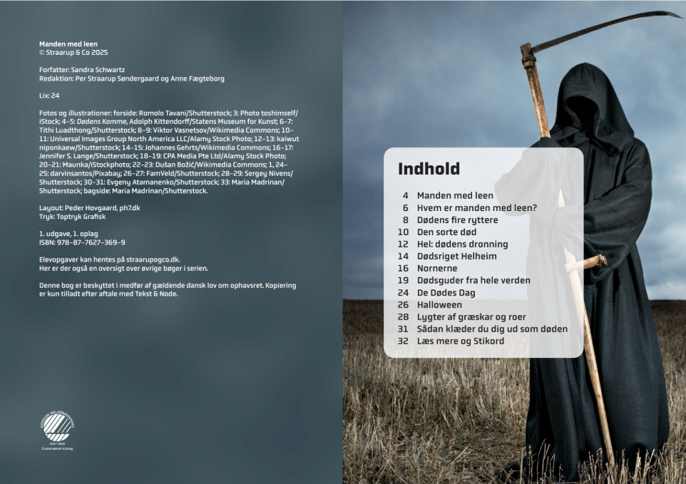 Døden har mange navne og ansigter. Måske har du hørt om manden med leen, som høster menneskers sjæle? Eller om andre dødsguder, dødsgudinder og traditioner tilknyttet til døden rundtom i verden? Du kan læse meget mere om alt dette i denne bog.