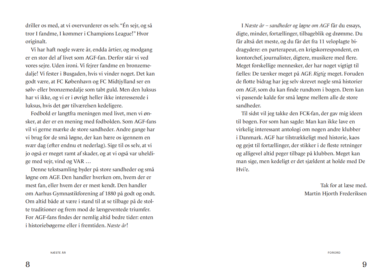 Næste år – sandheder og løgne om AGF er til alle AGF-interesserede. Til drømmerne og de desillusionerede. Til alle dem, der kan huske det seneste mesterskab og til alle dem, der stadig venter på at opleve deres første.