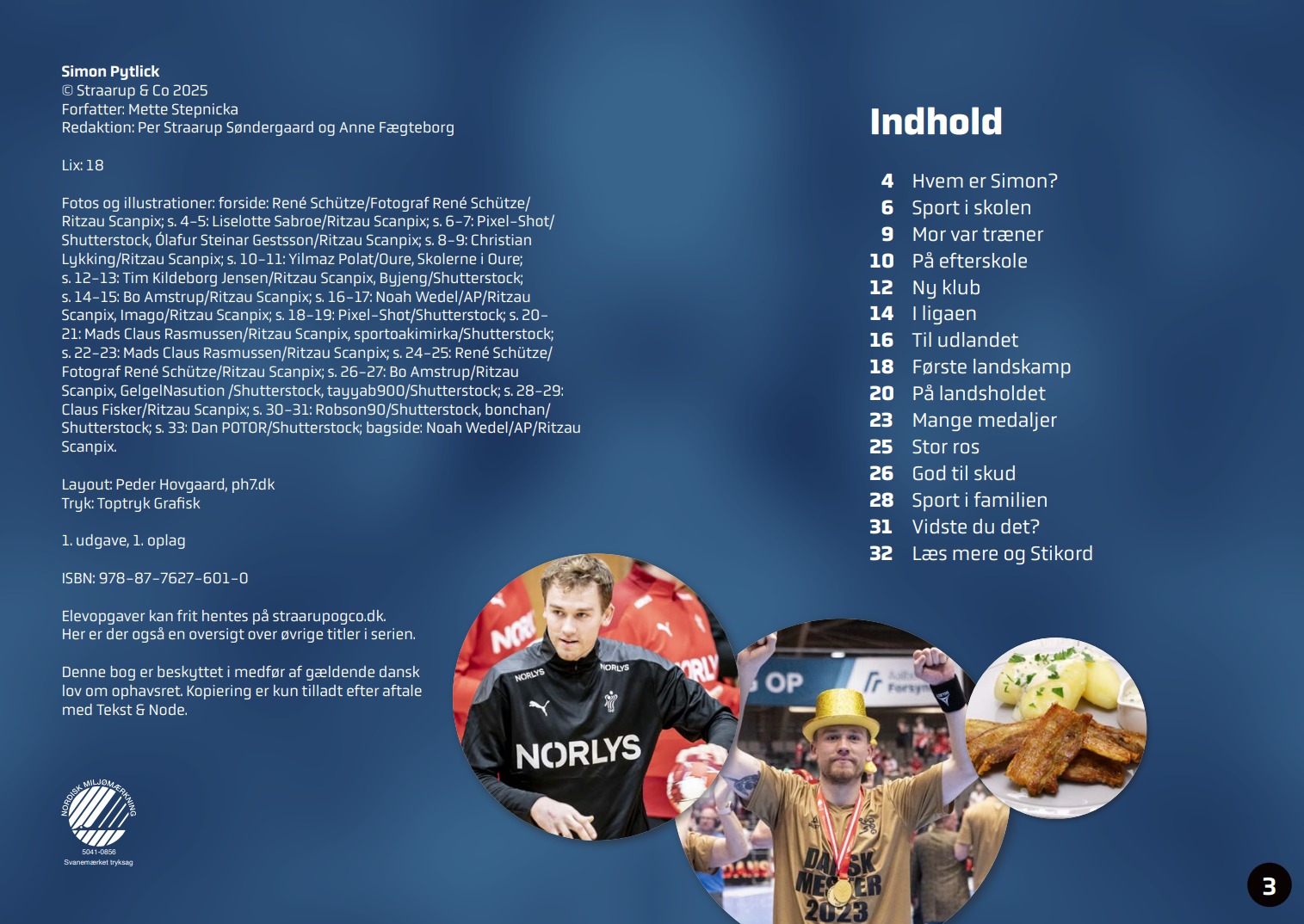 Simon Pytlick er håndboldspiller. Han har spillet håndbold i mange år. Han var kun fire år, da han begyndte. Han er på landsholdet og har vundet mange medaljer og priser. Læs mere om ham i denne bog.