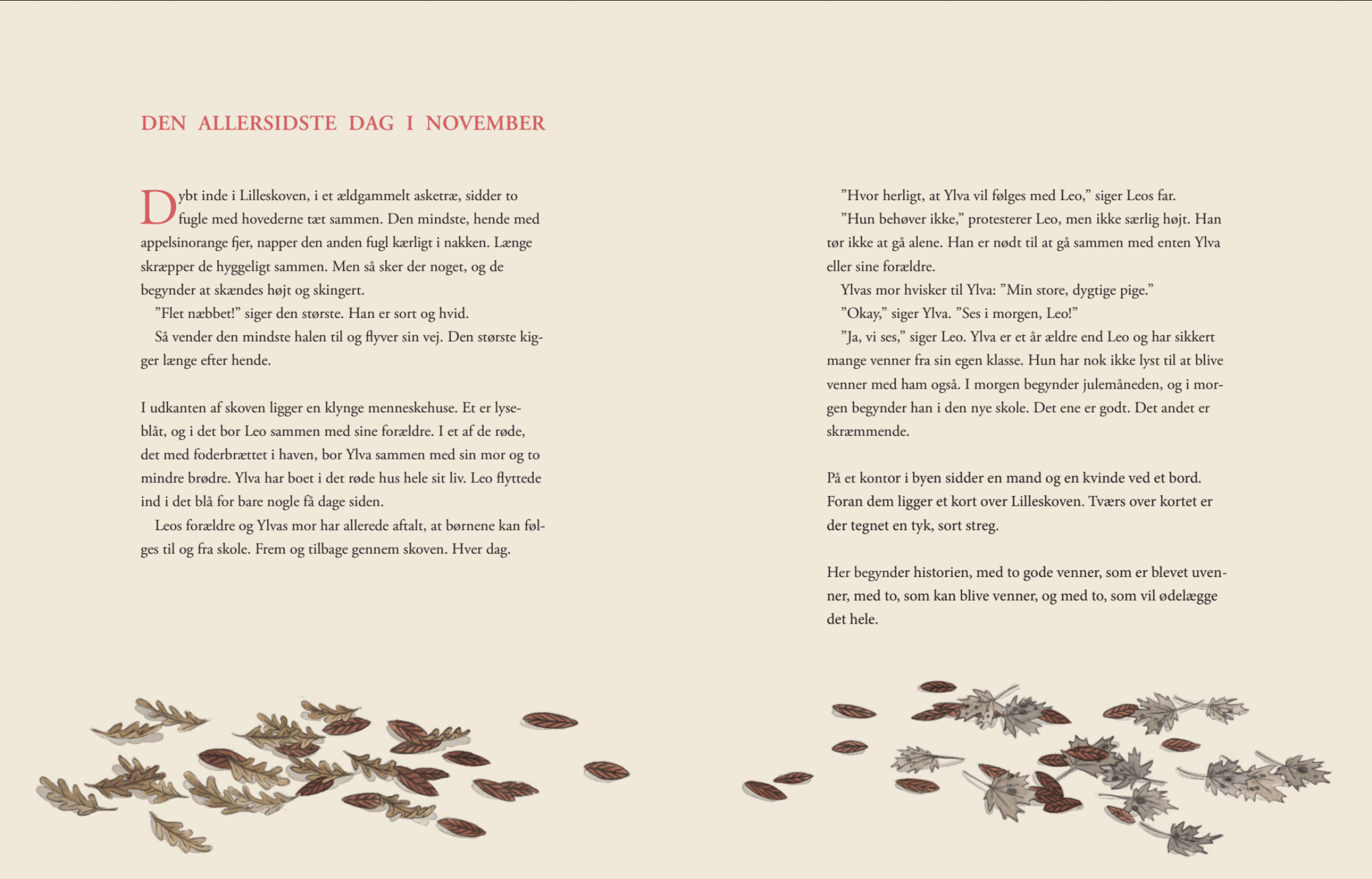 På et kontor i byen sidder en mand og en kvinde ved et bord. Foran dem ligger et kort over Lilleskoven. Tværs over kortet er der tegnet en tyk, sort streg …