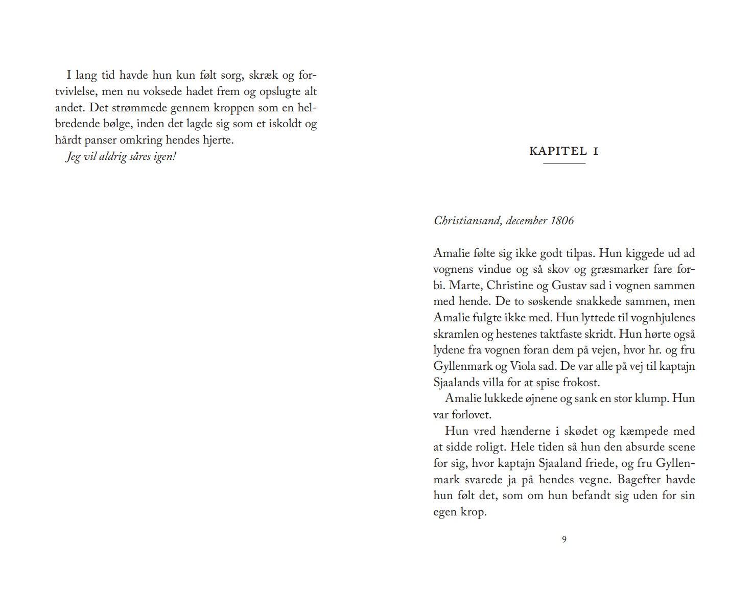 Det er usikre tider i det dansk-norske rige, der er præget af Napoleonskrigenes hærgen. Og både Amalie og Marte må på hver sin måde sande, hvor lidt et kvindeliv er værd i en verden styret af magt, politik og prestige …